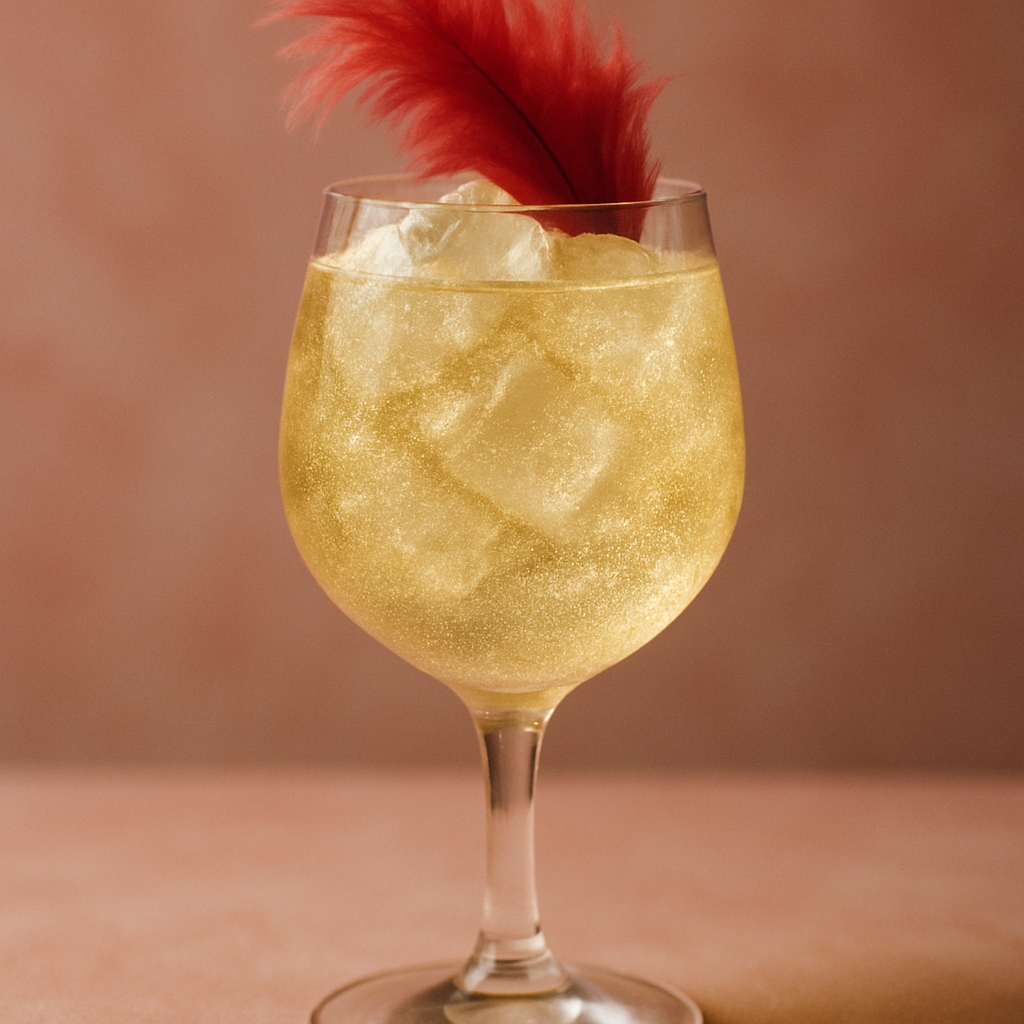 How to make: Build in a wine glass with ice. Stir gently and shimmer under the lights.