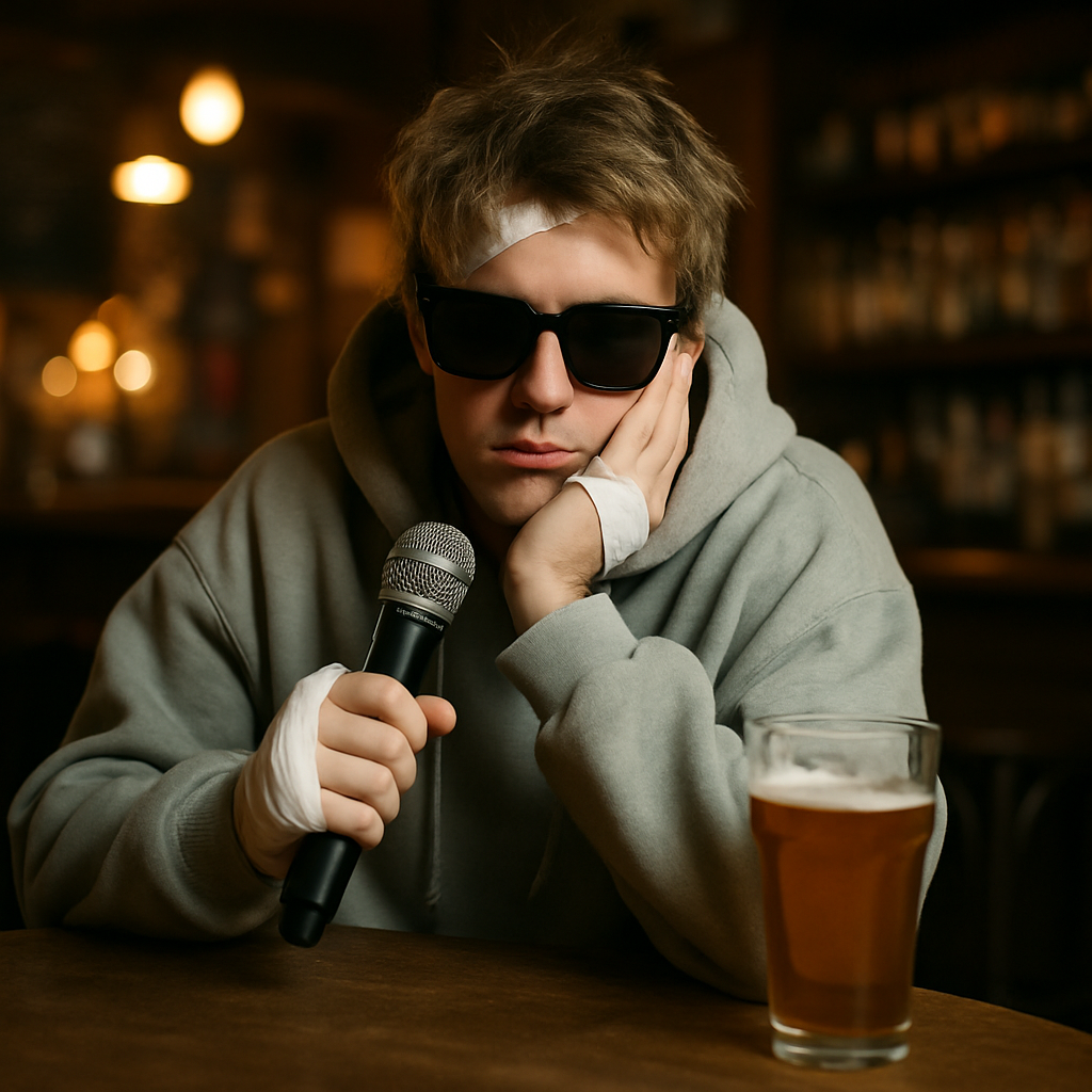 DIY Tip: Oversized hoodie, fake mic, bandages, sunglasses, and messy hair. Add paparazzi flashes on a phone screen for extra comedy.